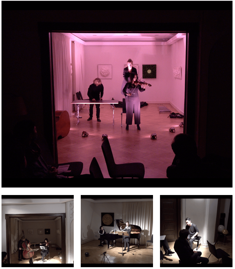 für drei Performer, Licht, mechanische Relais und Elektronik